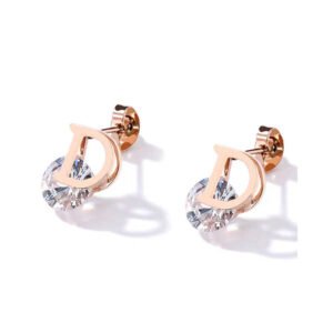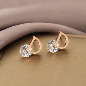 2024 New Trendy D-Shaped Earrings – French Style, Rhinestone Studs for Students & Influencers, Minimalist, Elegant & High-End