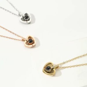 Cross-Border 100-Language “I Love You” Heart Projection Necklace – Tarnish-Resistant, Fresh & Sweet, Fashionable & Elegant Collarbone Chain