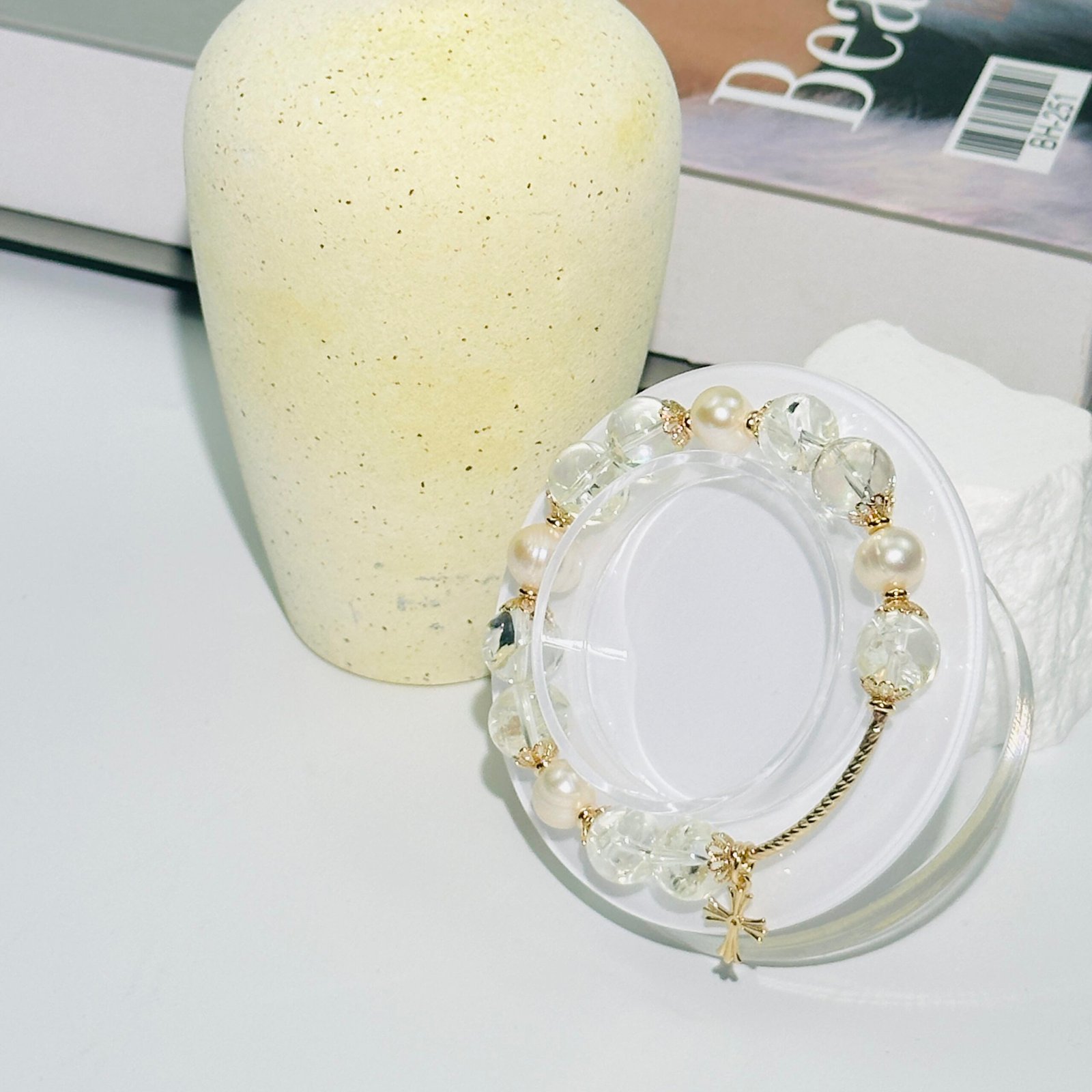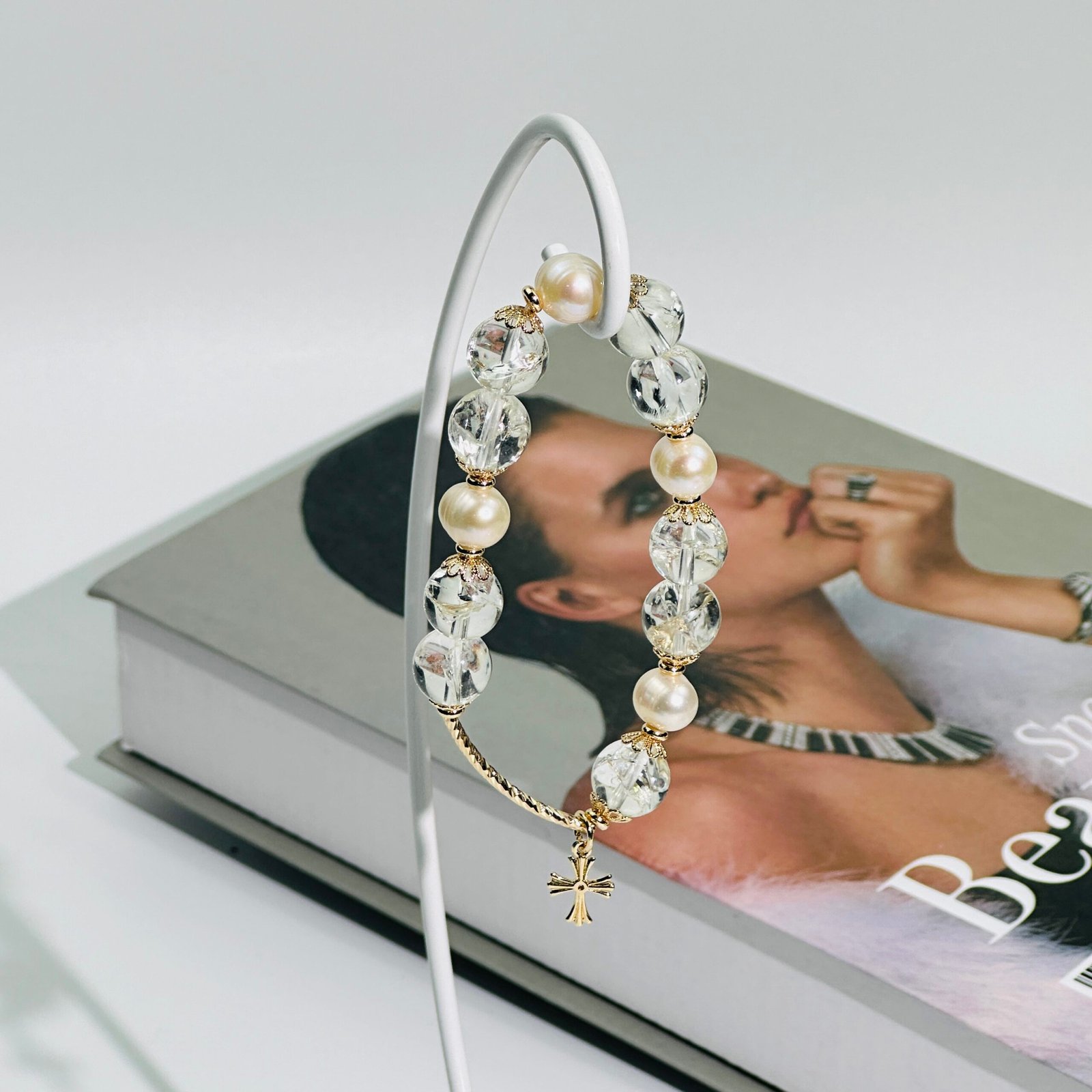 Designer bracelet made of natural white crystal.