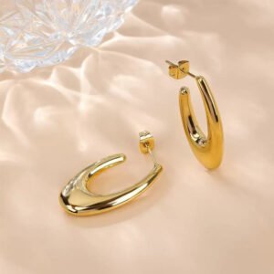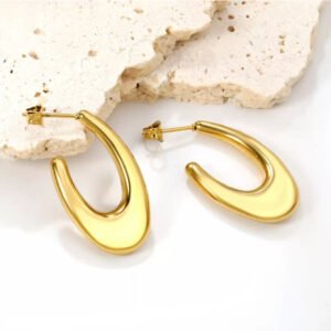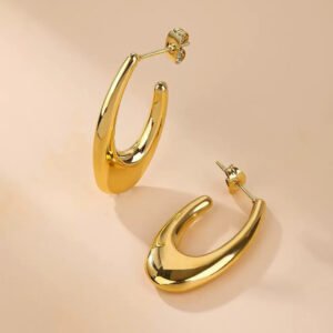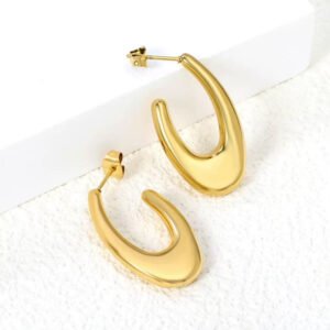 Elegant Hollow Earrings: Women’s U-Shaped Minimalist 18K Oval Stud Earrings, Versatile Jewelry