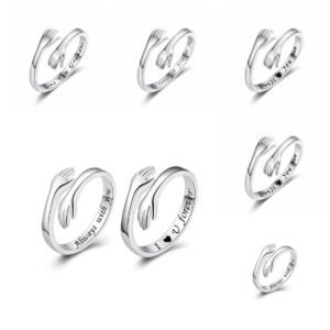 Engraved Double-Hand Embracing Ring for Women – Fashionable English Letter Index Finger Ring