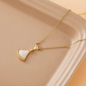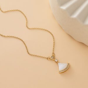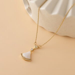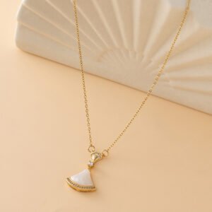 Exquisite Skirt-Shaped Necklace – Minimalist Fan-Style Collarbone Chain with Micro-Inlaid Pendant, High-End Light Luxury Fashion Jewelry