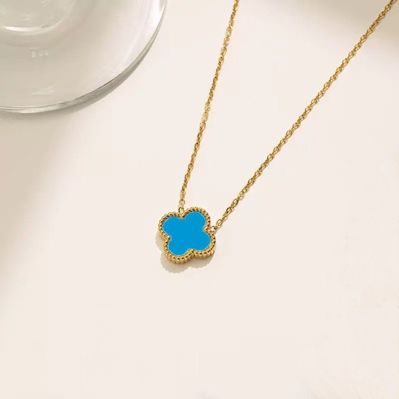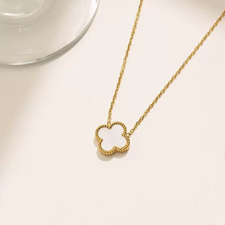 Fashionable titanium steel 13mm four-leaf clover set, simple and versatile, a must-have for internet celebrities, collarbone chain and ear accessories, factory direct supply.