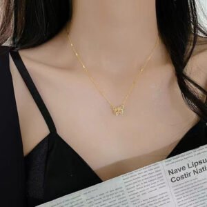 Light Luxury Fashion Versatile Butterfly Zircon Necklace – Titanium Steel Plated 18K Real Gold Stylish Collarbone Choker