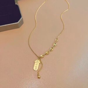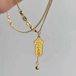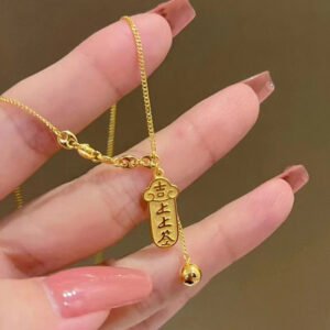 Lucky Draw Pendant Necklace – 18K Gold Plated “Get Rich” Small Gold Bar Design, Top Fortune Slip Style, Collarbone Chain with Tassel, Elegant Accessory
