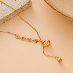 New Chinese-Style Titanium Steel Collarbone Chain – Peace & Joy Motif, Small Ingot & Fortune Pouch Design with Lotus Seedpod, Fashionable, Fade-Resistant & Versatile