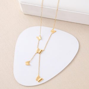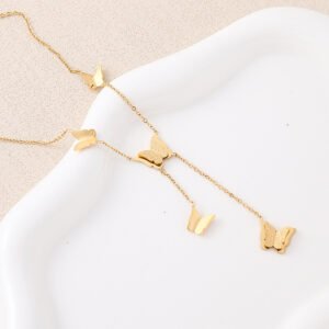 New Style Fashionable Women’s Necklace with Five Butterflies – 18K Non-Fading Matte Butterfly Versatile Collarbone Chain