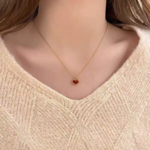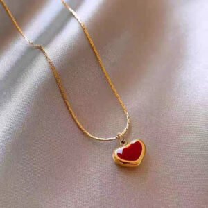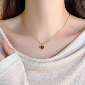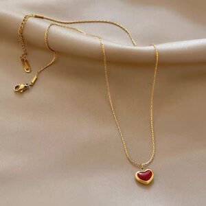 New Style Red Enamel Heart Necklace – Light Luxury Niche Collarbone Chain Pendant with High-End Vibe, Premium Jewelry Accessory