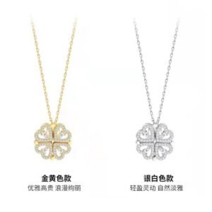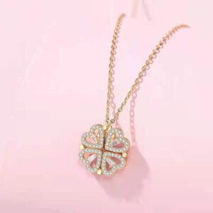 New Style Titanium Steel Necklace for Women, Full-Zircon Heart-Shaped Multi-Wear Magnetic Love & Four-Leaf Flower Necklace, Direct from Manufacturer