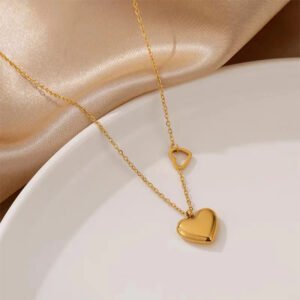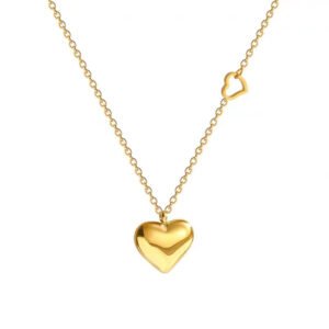 Niche Hollow-Out Design, 18K Double Heart Necklace, Solid Collarbone Chain, Elegant & Versatile
