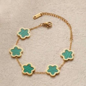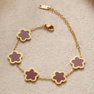 Titanium Steel 18K Five-Leaf Flower & Mother-of-Pearl Bracelet for Women: European-American Style, Fashionable, Exquisite, Lightweight & Versatile – Direct from Manufacturer