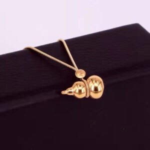 Titanium Steel “Fu” Character Round Buckle 3D Gourd Snake Bone Necklace – Fortune-Transferring Lucky Gourd Wealth-Attracting Collarbone Chain, Factory Direct Wholesale