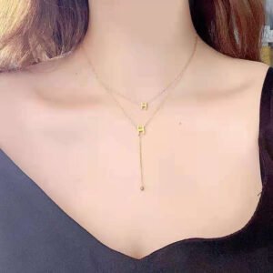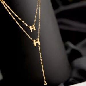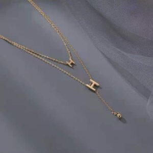 Titanium Steel Letter H Necklace – Light Luxury, Niche Style, Double-Layer Collarbone Chain with Double H Tassels, Versatile Neck Chain Accessory, Direct Wholesale from Manufacturer