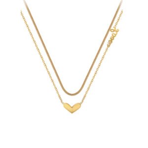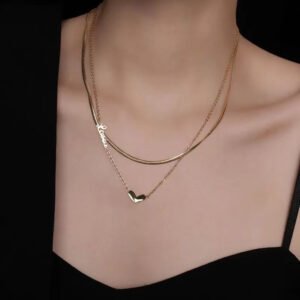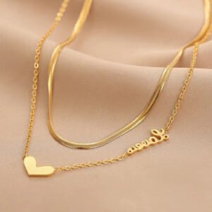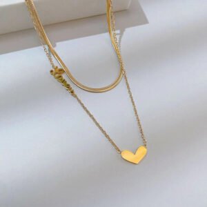 Women’s Double-Layer LOVE Letter & Heart Layered Necklace – 18K Gold-Plated Collarbone Chain Pendant Accessory