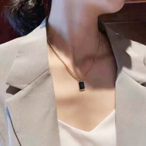 Be the first to review “Women’s New Square Alphabet Black-Plate Necklace – Light Luxury, Niche-Designed Western-Style Collarbone Jewelry”