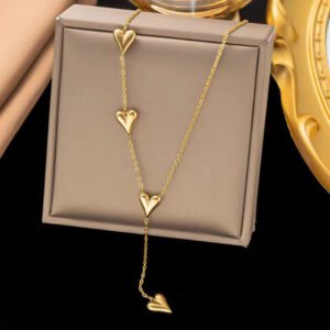 Women’s Sweet Style Heart-Shaped Tassel Necklace & Unique-Designed Love Bracelet – Versatile for Matching