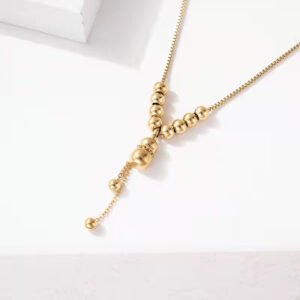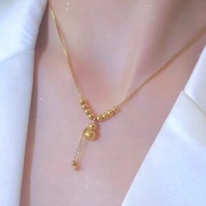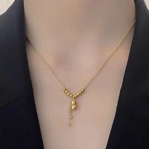 Women’s Tassel Gourd Lucky Bead Titanium Steel Necklace – Minimalist, High-End, Versatile Collarbone Chain, Direct Wholesale from Manufacturer