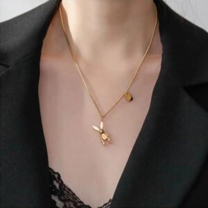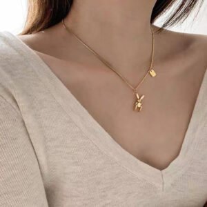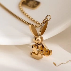 Women’s Titanium Steel Mechanical Rabbit Necklace – Niche Design, 2022 New Style Collarbone Chain & Fade-Resistant Sweater Chain Accessory