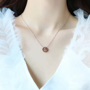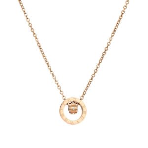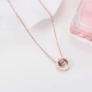 Women’s Titanium Steel Roman Numeral Necklace with Six Diamonds – Fade-Resistant, Internet-Famous Fashion Collarbone Chain for Wholesale, Double-Ring Pendant with Roman Numerals