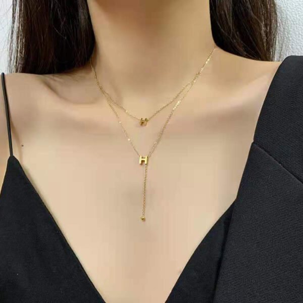 Women’s Titanium Steel Tassel Lucky Bead Necklace – Niche Designed Round Bead Collarbone Chain, Versatile Accessory