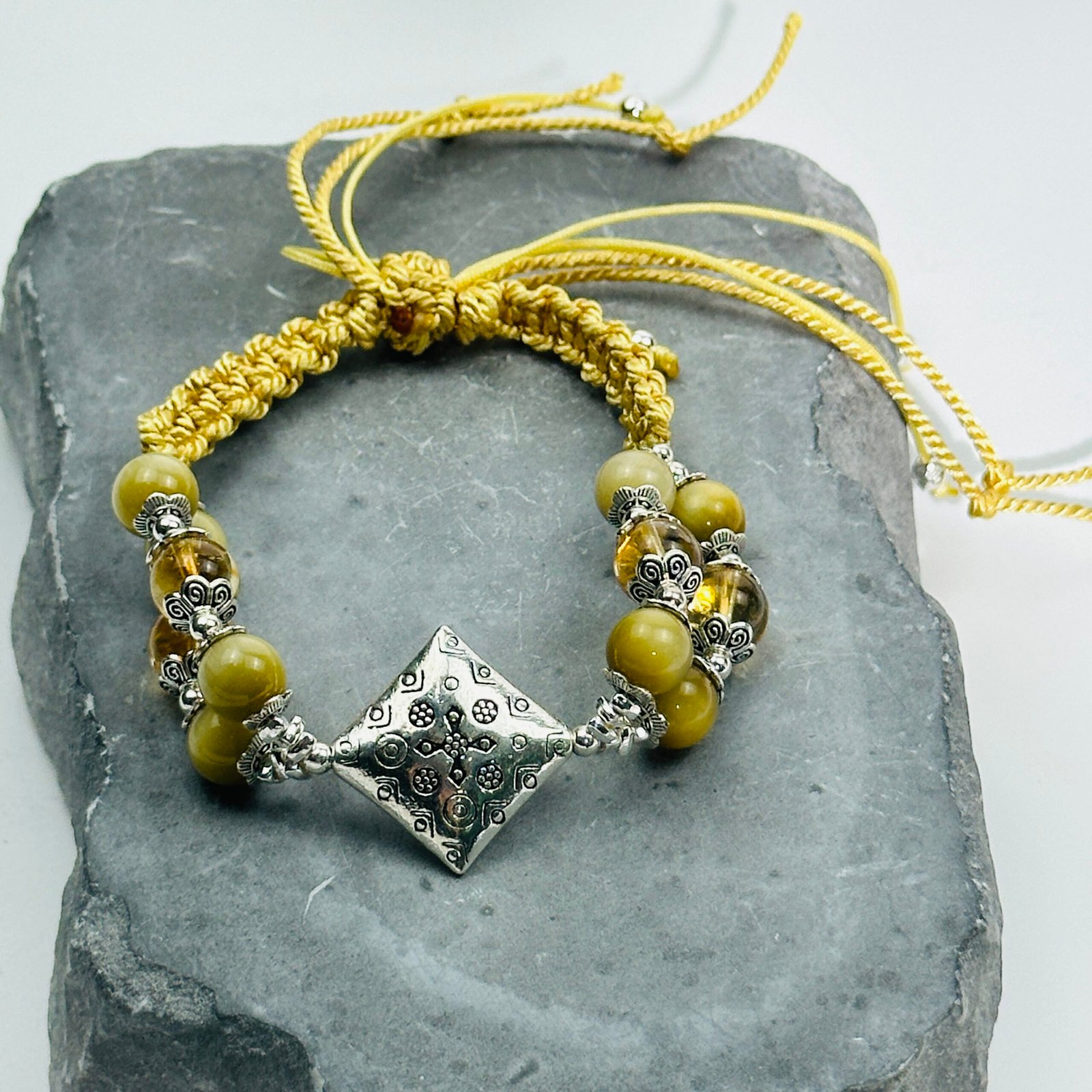 Yellow Crystal Handmade Braided Rope Design